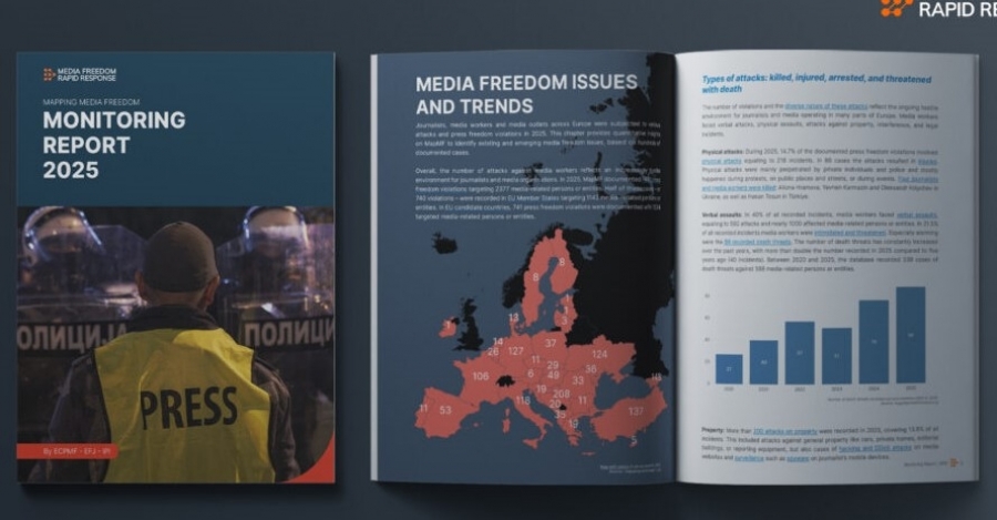 „მედიის თავისუფლების სწრაფი რეაგირების“ (MFRR) კონსორციუმმა გამოაქვეყნა ანგარიში, რომელშიც მედიის თავისუფლების დარღვევის ყველა ის შემთხვევაა გაანალიზებული, რომელიც 2025 წელს, ევროკავშირის წევრ და კანდიდატ ქვეყნებში დაფიქსირდა.